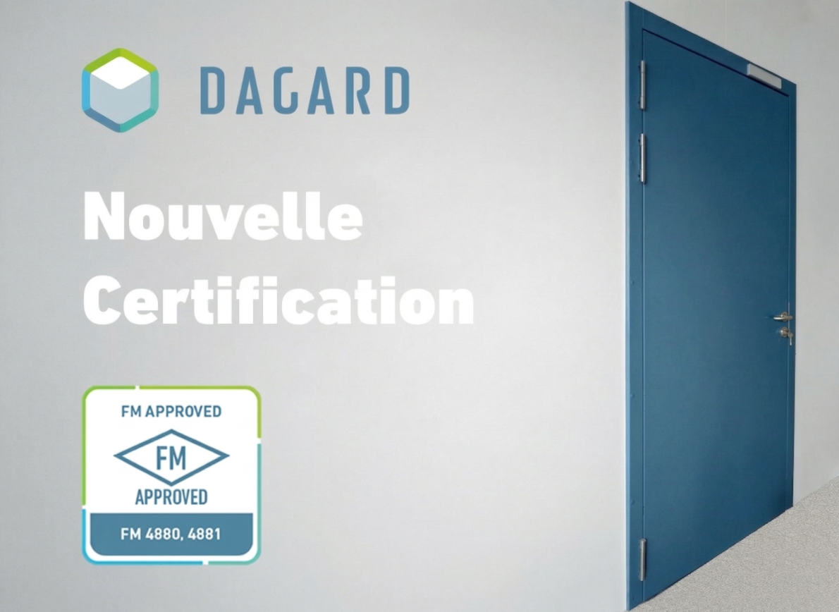 Dagard est fier d’annoncer que les panneaux et portes de sa gamme coupe-feu ont obtenu la certification FM Approved. Plus qu’un test, une certification reconnue mondialement, délivré par le groupe international FM Global. Grâce à un cadre rigoureux fondé sur la recherche scientifique, des essais intensifs et des évaluations approfondies, FM Approved certifie les produits et services répondant à certains des standards les plus exigeants du secteur en matière de qualité, d’intégrité technique et de performance fiable.